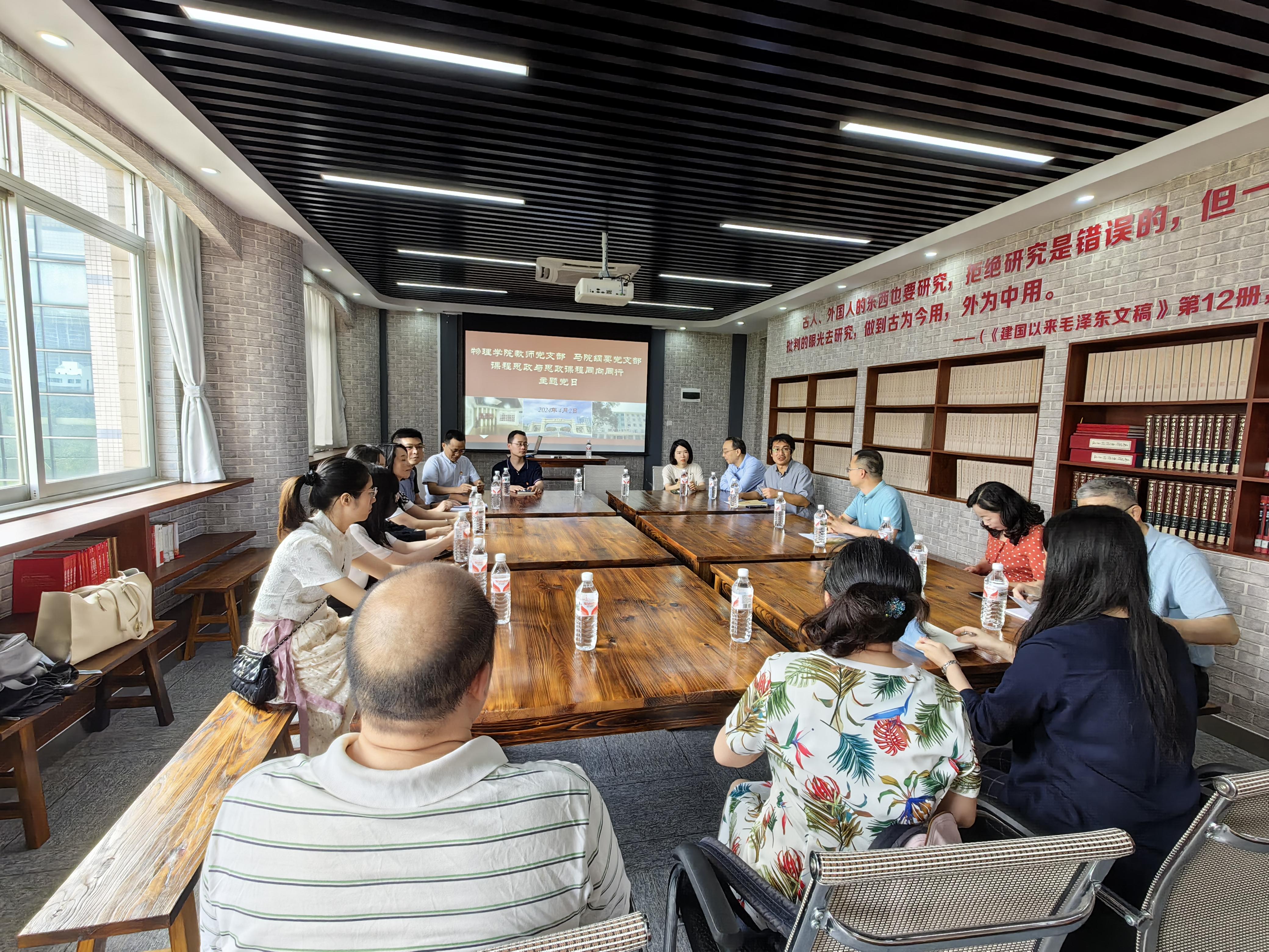 4月2日下午,太阳集团2007光电材料教工党支部与马院纲要党支部在马院毛泽东书屋,联合举行“课程思政与思政课程同向同行”主题党日活动。本次主题党日活动旨在加强不同学科背景教师之间的课程思政工作交流、经验分享与相互促进,就如何更好地提高课程教学质量展开探讨。