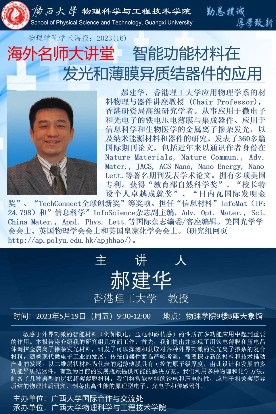上一篇:2023年学术报告系列之17:君武大讲坛——发光材料与发光器件