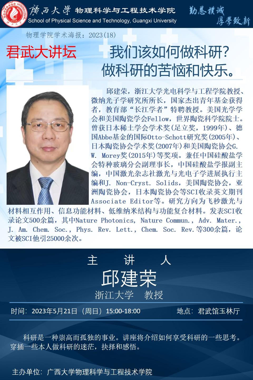 下一篇:2023年学术报告系列之17:君武大讲坛——发光材料与发光器件
