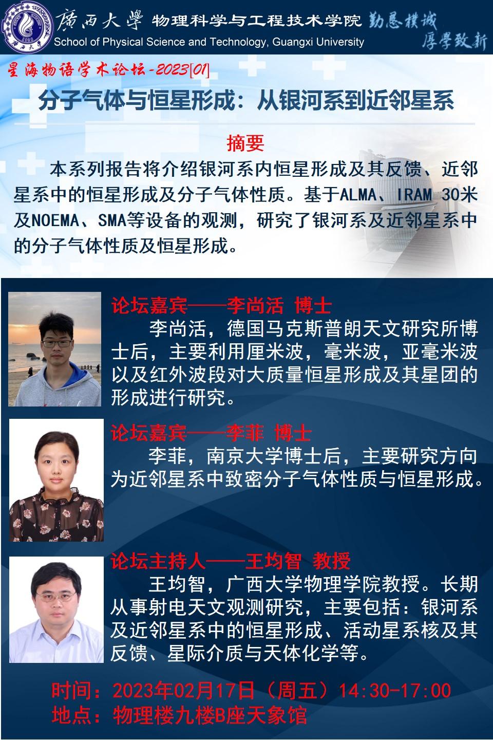 上一篇:2023年星海物语学术论坛(第二期):黑洞、双星在高能波段及时域光变领域研究进展的讨论和展望