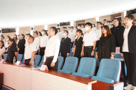 会议伊始,全体奏唱国歌,数学与信息科学学院研究生会代表裴茗炀同学和校研究生会代表马朝阳同学分别致贺词。