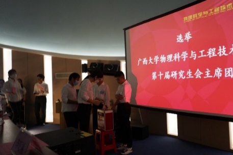 物理科学与工程技术学院第十届研究生代表大会于2022年6月9日下午在物理楼九楼天象馆隆重召开。