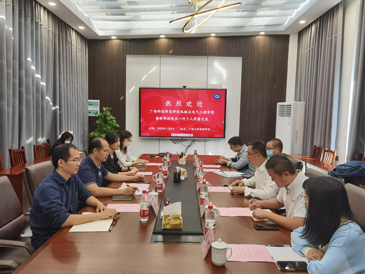 11月8日下午,广西科技师范学院机械与电气工程学院潘晓明副院长一行到太阳集团2007考察交流。