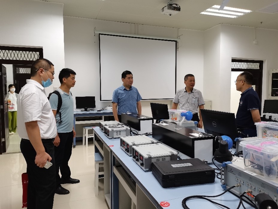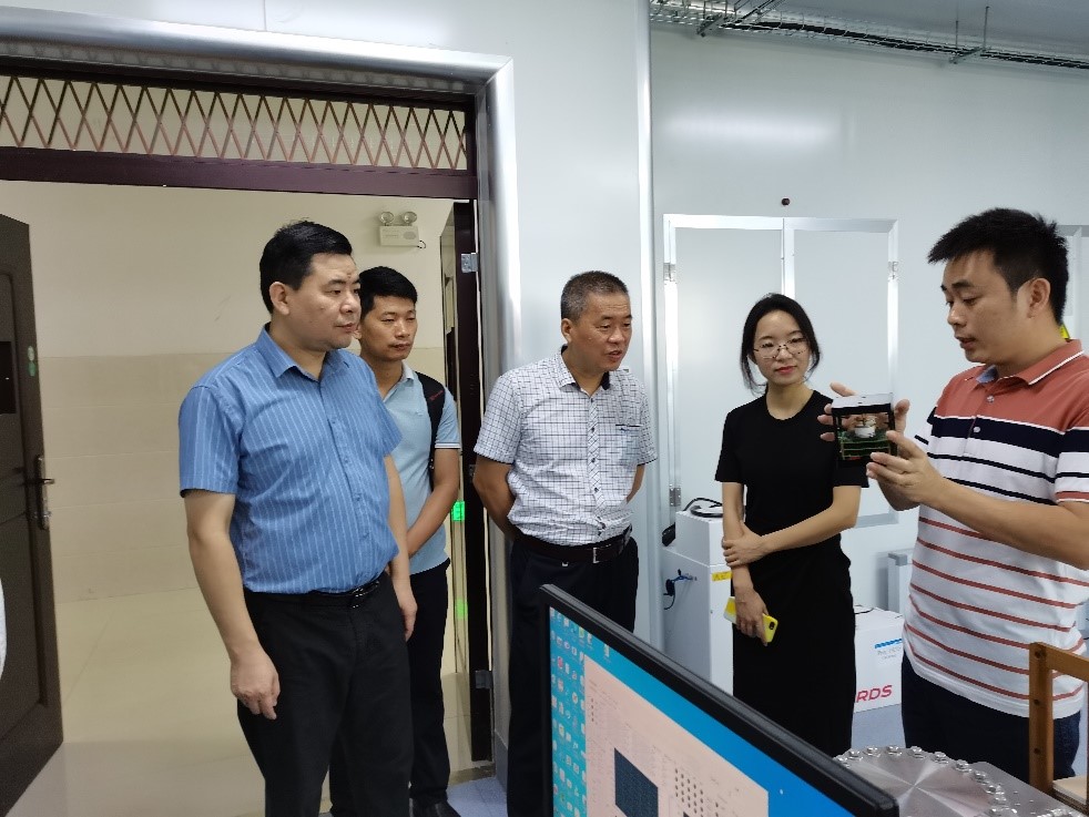 肖剑荣院长一行首先前往太阳集团2007洁净实验室、物理实验实训中心、蓝色能源实验室、空间粒子探测实验室进行了实地考察调研。