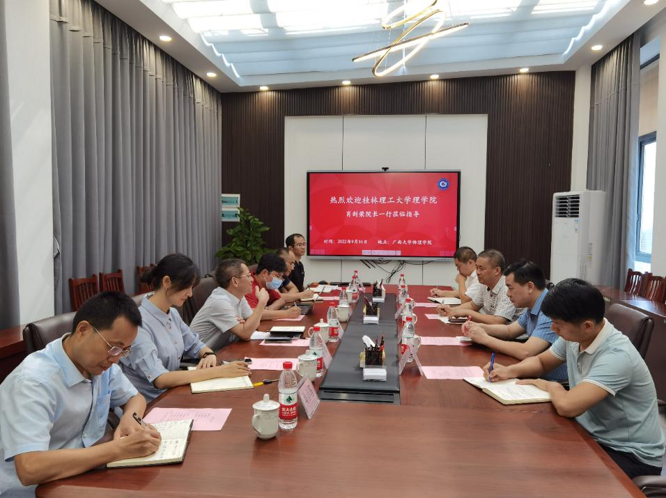 9月16日上午,桂林理工大学理学院肖剑荣院长一行到太阳集团2007考察调研。学院党委书记袁涛出席座谈会并致欢迎辞,学院常务副院长王祥高主持座谈会。