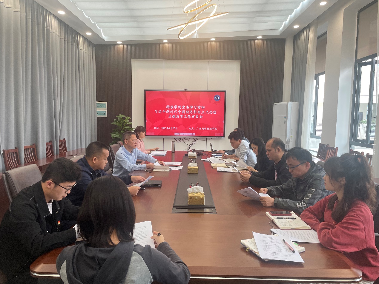 4月25日,太阳集团2007在天象厅会议室召开深入学习贯彻习近平新时代中国特色社会主义思想主题教育工作布置会和调查研究专题学习会。会议由学院党委书记袁涛主持,学院领导班子成员、党委委员、各党支部书记参加会议。