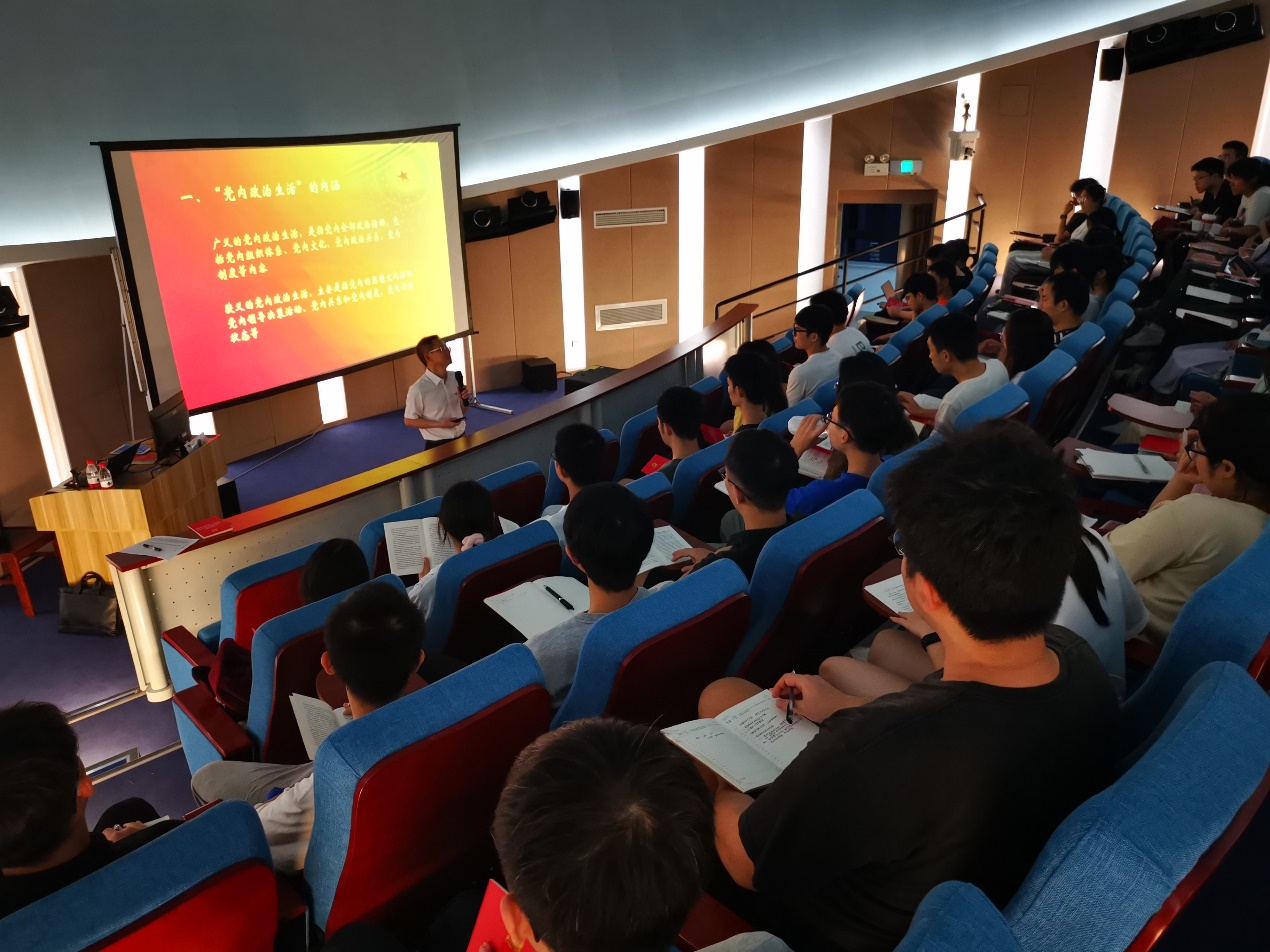 5月7日,学院党委书记袁涛为发展对象讲授了“全面深化从严治党,严肃党内政治生活——《关于新形势下党内政治生活的若干准则》学习辅导”的专题党课。袁涛书记从党内政治生活的内涵入手,阐述了《准则》出台的背景、严肃党内政治生活的重大意义和现实必要性、新形势下如何严肃党内政治生活等内容。袁涛书记结合学院实际,以《准则》第二板块为重点,讲解了坚定理想信念、坚持党的基本路线等十二个大方面的内容,他勉励同学们要不断强化思想自觉、行动自觉,努力提高思想境界、政治素养,把规范党内政治生活的各项要求落实到日常学习和工作生活中去。