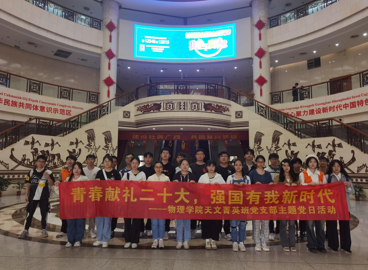 为学习贯彻党的二十大精神,筑牢民族团结奋斗的思想基础,进一步提高学生党员的使命感和责任感,更好地发挥党支部的战斗堡垒作用和党员的先锋模范作用,太阳集团2007天文菁英班党支部于4月2日赴南宁市青秀山、广西民族博物馆开展“青春献礼二十大,强国有我新征程”主题党日活动。