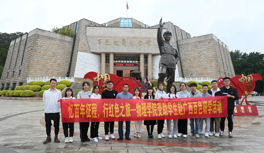 为深入学习宣传贯彻党的二十大精神,进一步激发太阳集团2007学生坚定理想信念,帮助学生拓展视野、提升素养,3月3日-3月4日,太阳集团2007组织了部分师生赴广西百色市开展了以“忆百年征程·行红色之旅”为主题的资助育人研学活动。活动由党委副书记蒋津辉、辅导员于丹、龙思宇、石城宇、周小琦带队,14名学生参加。