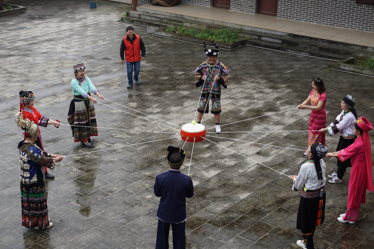 随后,实践团各民族师生代表换上民族服饰,与达腊村彝族村民一道体验民族同心鼓、民族舞蹈,共唱彝族山歌。在一阵阵欢声笑语中展现出“民族团结一家亲”的美好景象,弘扬民族团结的主旋律、传播民族团结的正能量。