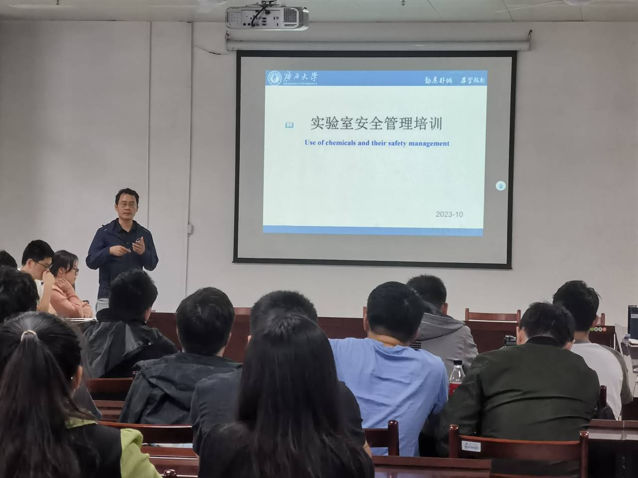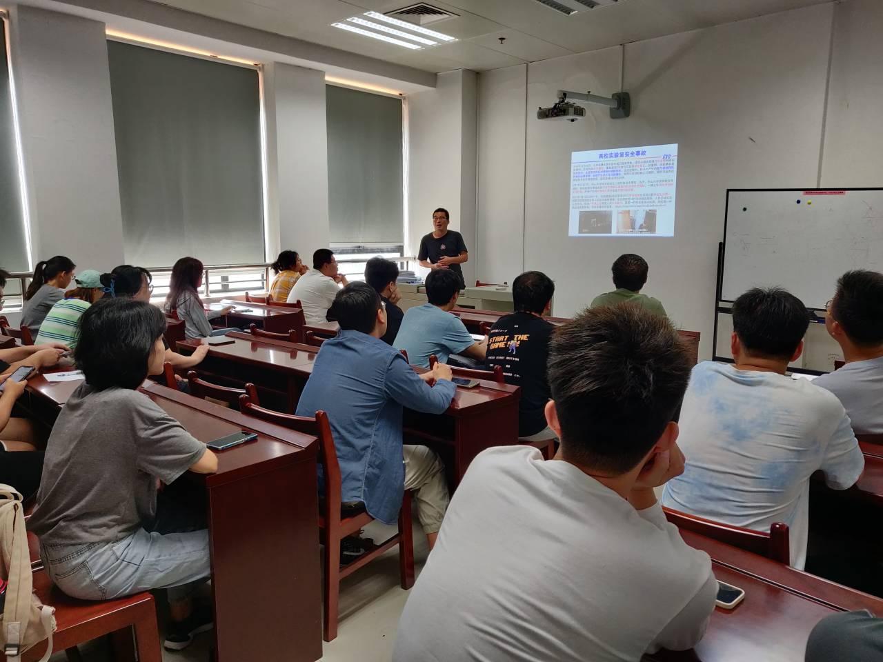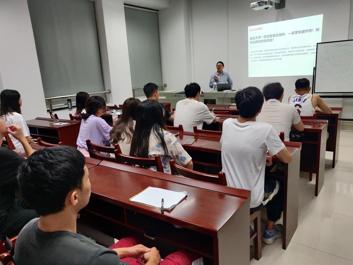 各实验室开展培训的内容主要包括实验室安全事故案例分析,学校、学院和实验室安全管理制度和其它相关的规章制度以及各实验室针对性的安全培训等。结合各自实验室的特点,主讲教师详细地介绍了本实验室存在的危险源、风险点、安全隐患及应对措施,并提出有计划地开展本实验室的应急演练,使学生对实验室有了更深刻的认识。学院安排督查组成员到每场培训现场旁听和指导,并与师生进行沟通交流。实验室安全培训使学生加强了实验室安全意识,提高了识别风险和应对风险的能力。