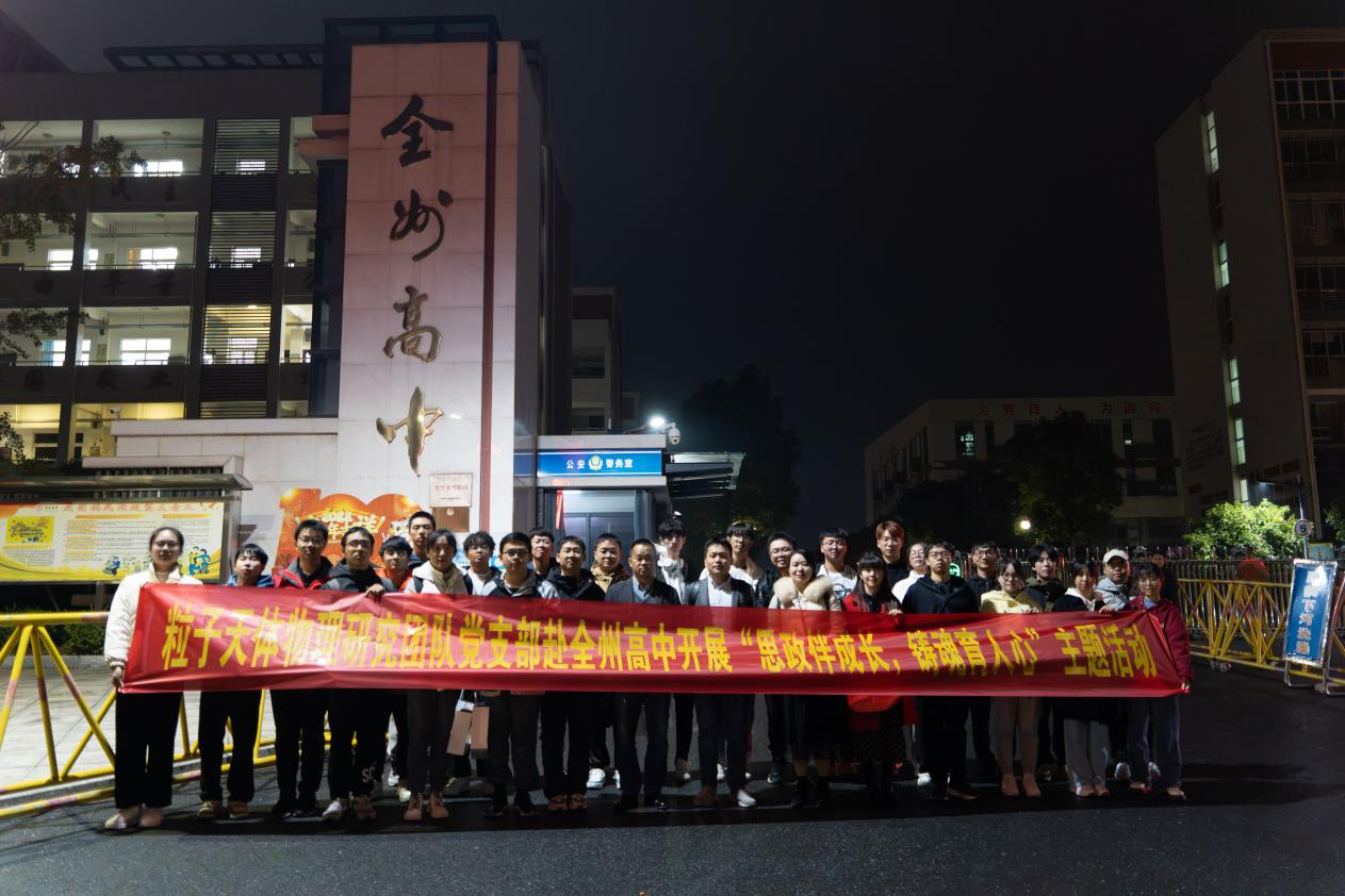为发挥党支部的模范引领作用,加强对青少年的思想政治教育,12月3日,粒子天体物理研究团队党支部成员赴全州高中开展了一场题为“思政伴成长,铸魂育人心”主题活动。太阳集团2007党委副书记蒋津辉,副院长、粒子天体物理研究团队党支部书记刘宏邦及部分学生党员参加了活动。