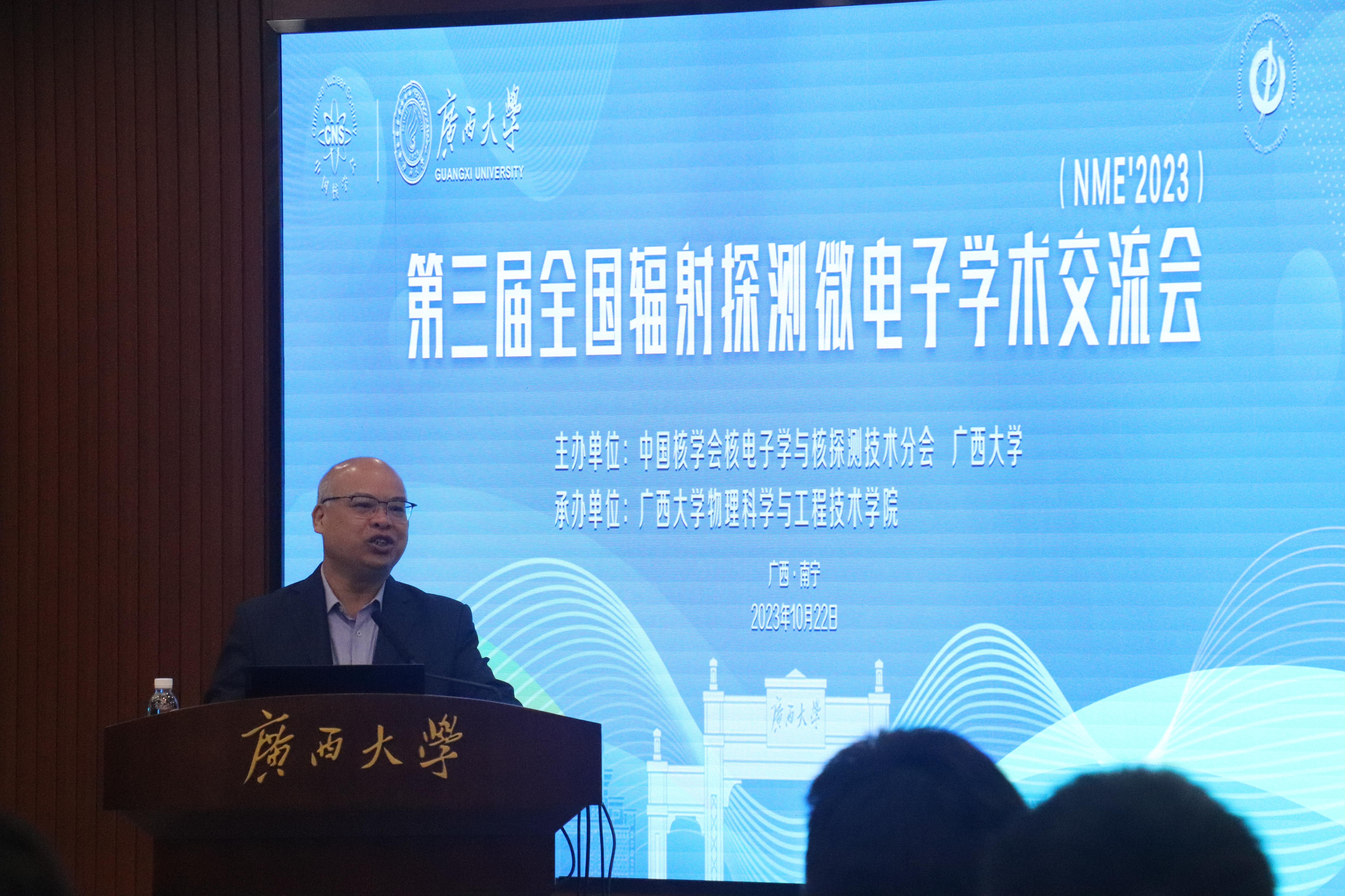 10月22日,第三届全国辐射探测微电子学术交流会在广西大学顺利召开。全国辐射探测微电子学术交流会是由中国核学会核电子学与核探测技术分会发起的系列学术会议,每年举行一次,旨在促进国内核辐射探测微电子技术的发展,推动相关技术在基础和其他领域中的应用。本届会议由中国核学会核电子学与核探测技术分会和广西大学主办,中国核学会为会议指导单位,由我校物理科学与工程技术学院承办。