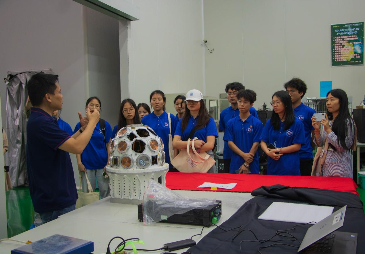 来到中国科学院高能物理研究所,由张双南院士为同学们开展关于深度探索极端宇宙的学术报告。在这场报告中,同学们领略到了科学家们如何揭开宇宙神秘的面纱,探索隐藏在极端条件下的宇宙奥秘。紧接着,太阳集团2007副院长刘宏邦带领同学们走进高能物理实验室,向同学们讲解了这些精密仪器的探测原理。