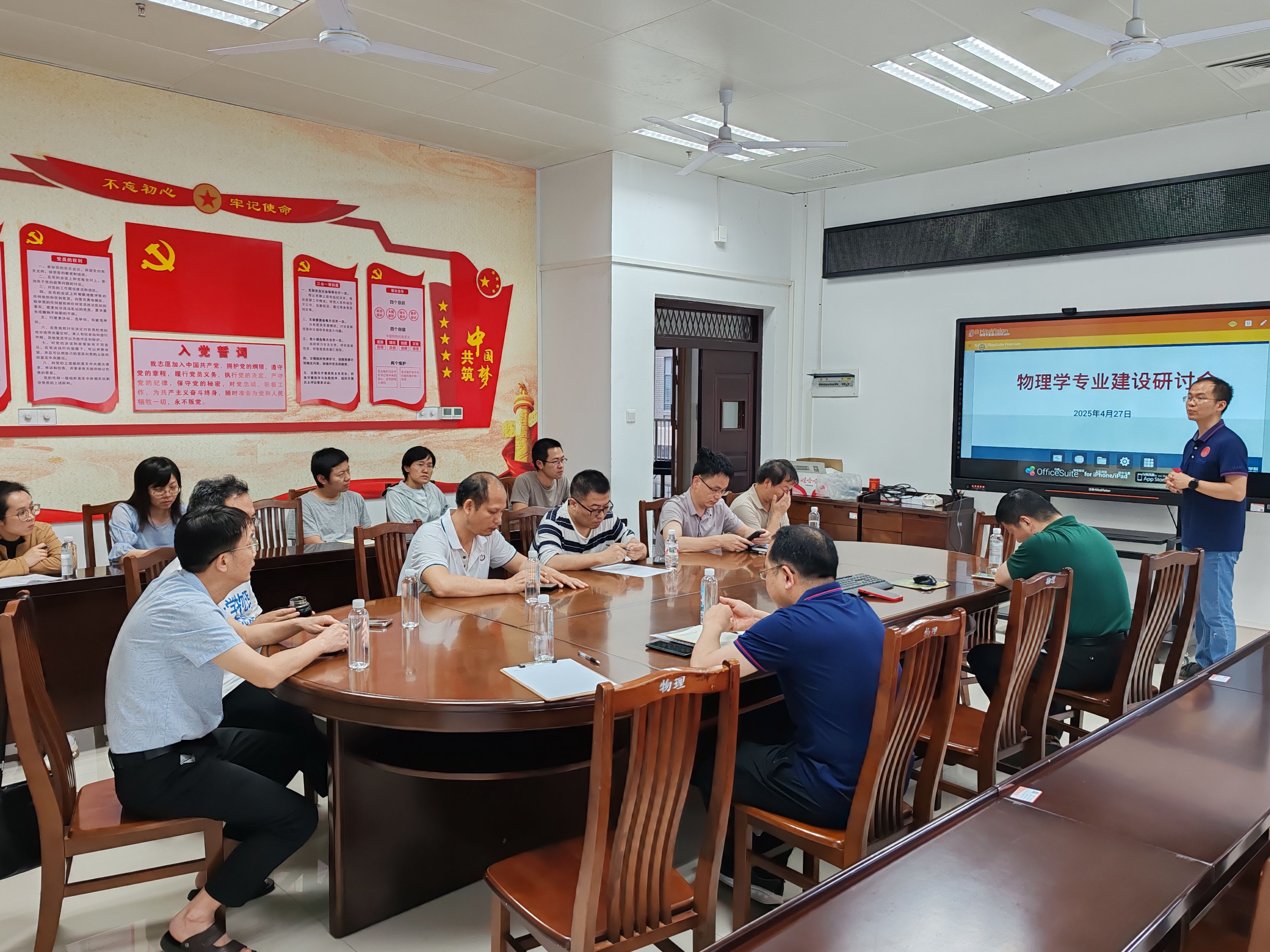 2025年4月27日下午,为落实《教育强国建设规划纲要(2024—2035年)》要求,提升物理学专业本科教学质量,太阳集团2007物理系在物理楼D207召开物理学专业建设规划研讨会。会议聚焦专业长远发展,旨在借学校特色、专业优势与倍增计划资源,推动专业建设再上新台阶。物理系主任梁毅主持会议,副院长林达斌参加会议。