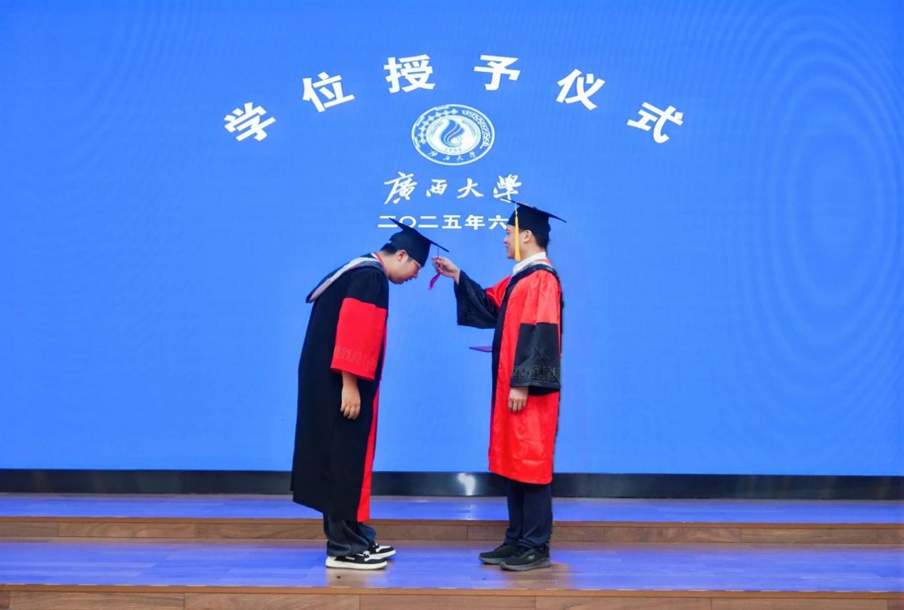 “复兴中华,发达广西”“努力,努力,大家一齐努力”……毕业典礼暨学位授予仪式在嘹亮的校歌声中落下帷幕。