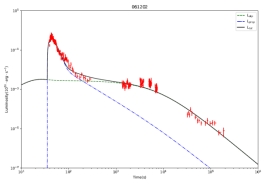 左图:磁星螺旋桨回落吸积模型数据拟合,以GRB 061202为例;