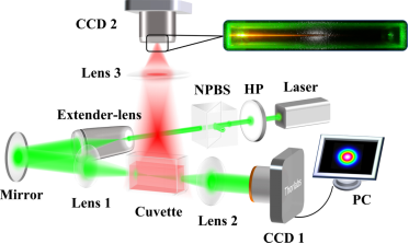自聚焦(self-focusing)是指某些介质受强光照射时,材料折射率发生与光强相关的变化,最终使得光束如同经过透镜一样自行汇聚的现象。研究团队对悬浮液浓度、输入光束功率和食品染料种类、硫化亚铜纳米悬浮液成分配比的定性分析表明,532nm 高斯光束在五种广泛使用的染色剂悬浮液中存在明显非线性自聚焦现象,1064nm光可以在等离子共振波长位于红外波段的硫化亚铜纳米液中实现明显的非线性自聚焦传输。前种主要归因于热效应引起的焦点偏移。特别是,诱惑红染色剂悬浮液具有使得532 nm 激光自聚焦传播长达 5 cm 的最佳非线性性能。通过研究五种食品染料的光学吸收和光学非线性(包括非线性折射率和吸收系数),进一步解释了它们自聚焦效应的显著差异;后一种归因于等离子共振吸收不同,引起光镊力对纳米颗粒操控不同,形成颗粒空间分布不同,导致折射率中间分布大,边上弱,从而形成非线性自聚焦。这些工作为具有光学非线性的合成食品着色剂的定量分析提供了系统研究,证明了硫化亚铜悬浮液中的强非线性自聚焦传播和高非线性折射率。这在具有软物质的非线性光学中具有潜在的应用。