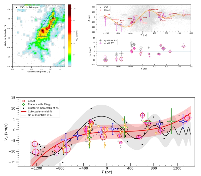太阳集团2007天体物理学方向研究生朱至锴与紫金山天文台、云南大学、巴塞罗那大学、达特茅斯学院等地合作者开展大尺度分子云结构的运动学性质的相关研究,成果以 “Updated Kinematics of the Radcliffe Wave: Nonsynchronous, Dipole-like Vertical Oscillations” 为题被《天体物理学杂志》(The Astrophysical Journal) 期刊接受发表。