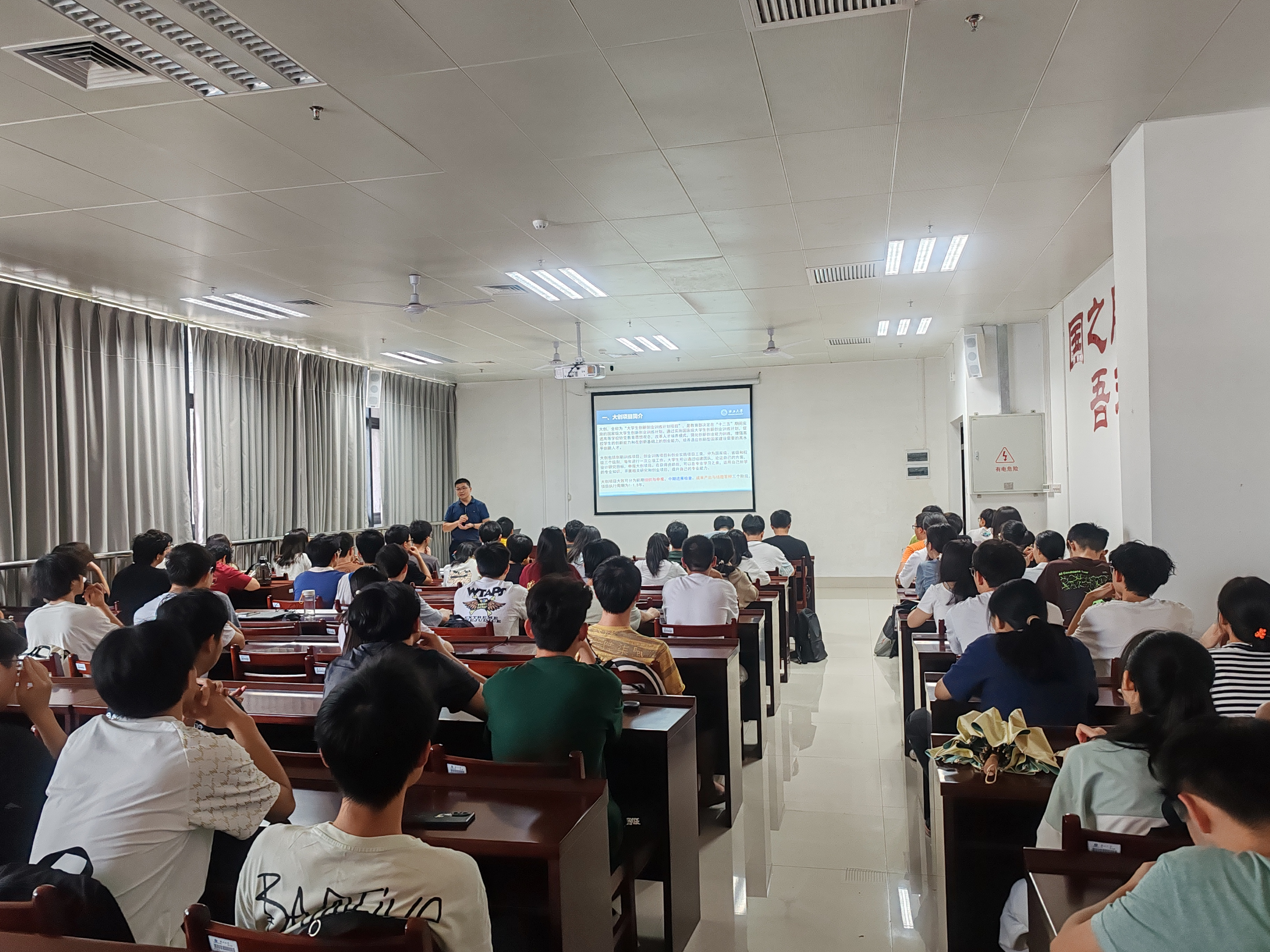 On June 4, 2024, our college held a project promotion meeting for the College Students' Innovation and Entrepreneurship Training Program in Room A506. The meeting was chaired by Cao Sheng, Deputy Director of the Physics and Electronics Innovation Teaching and Research Office and Deputy Director of the Department of Electronics.